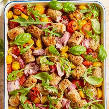 Dès que le four est disponible, placez le plat de saucisse 15 min au four à 180°C.